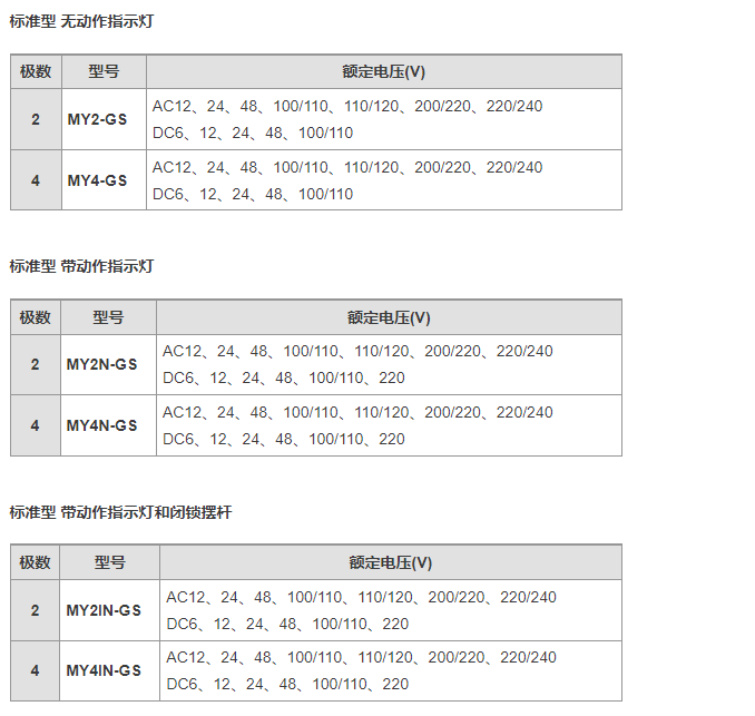 歐姆龍微型繼電器MY2N-GS系列產(chǎn)品種類(lèi)介紹: