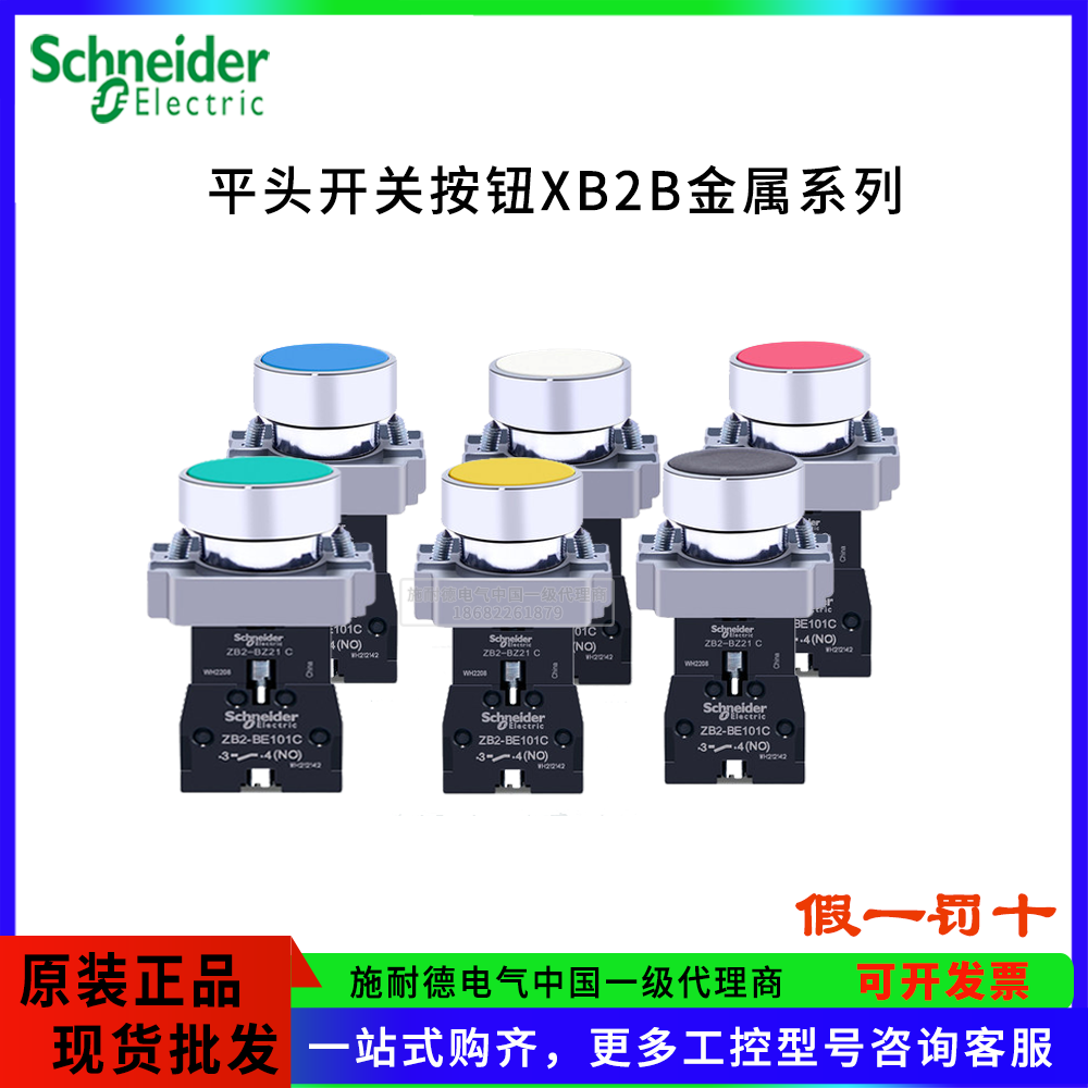施耐德XB2BA系列金屬按鈕Ø22 國產(chǎn)金屬平頭按鈕指示燈XB2BA31C代理,顏色多選