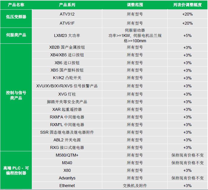 因原材料成本上升,為更好地適應(yīng)市場環(huán)境,施耐德電氣工業(yè)事業(yè)部決定對部分產(chǎn)品進(jìn)行價格調(diào)